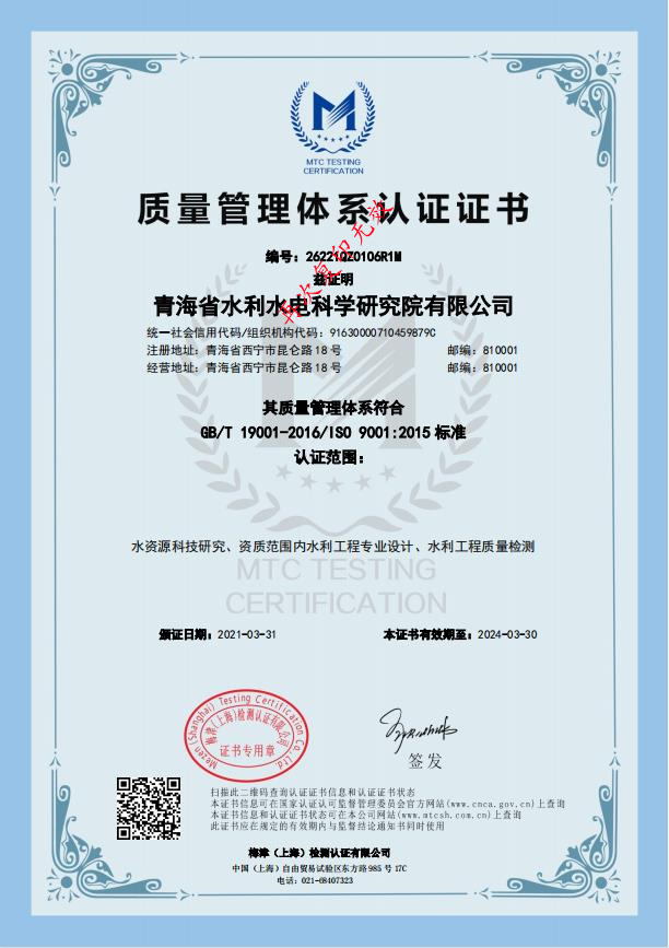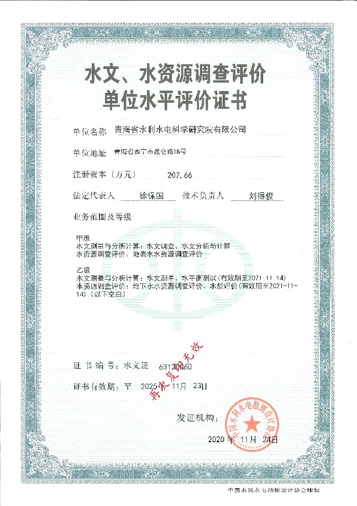 水文、水資源調(diào)查評(píng)價(jià)資格證書(shū)