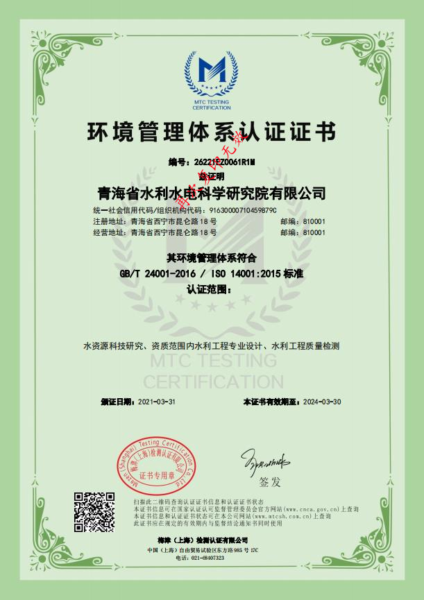 環(huán)境管理體系認(rèn)證證書(shū) -