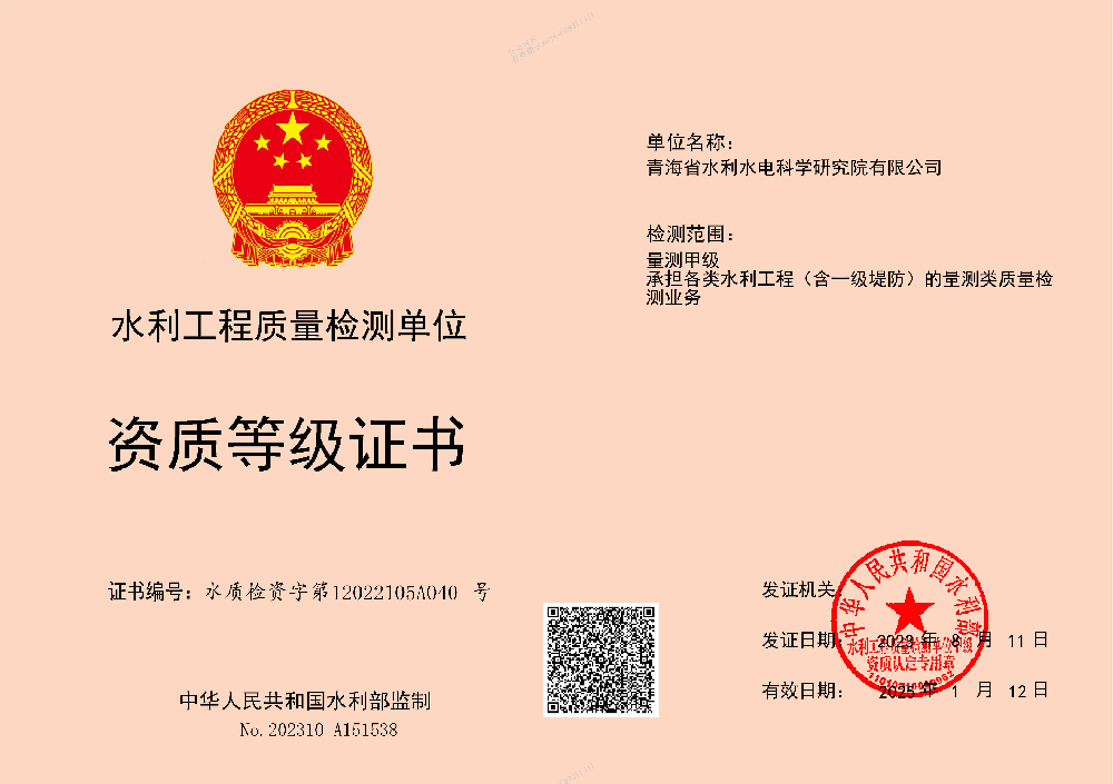 水利工程質(zhì)量檢測(cè)單位資質(zhì)等級(jí)證書(shū)(量測(cè)類) -